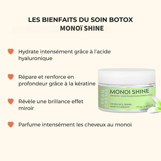 Nos soins reproduisent les effets d’un soin profond de salon (type “botox capillaire” ou kératine) — maisà domicile, de manière plus douce, naturelle, et économique.