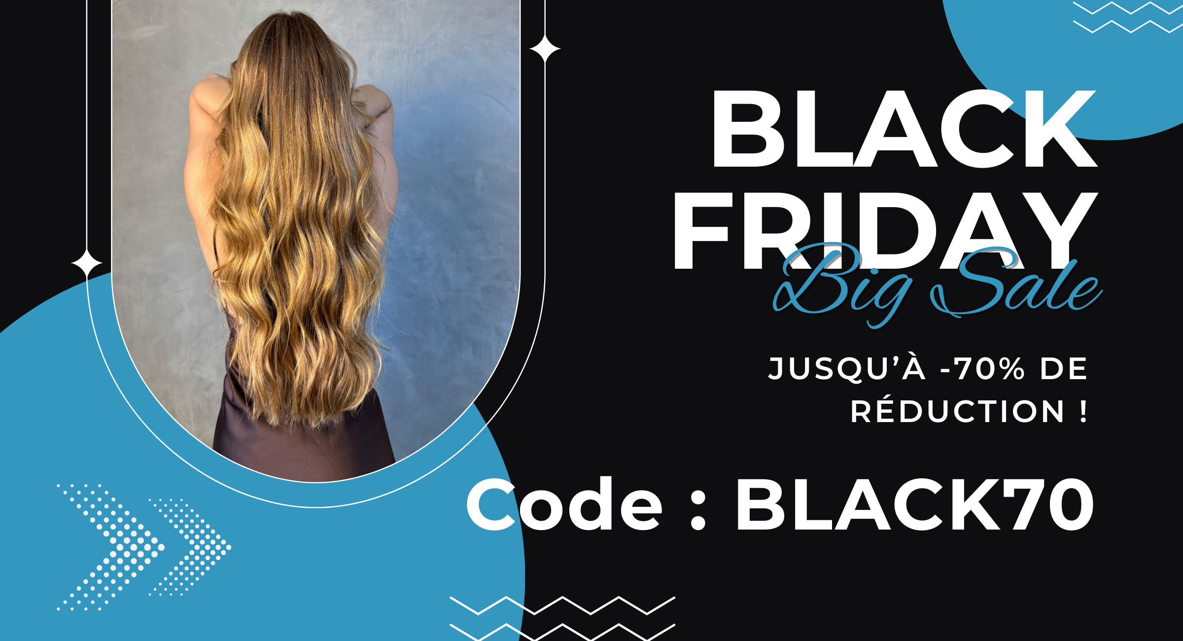 Jusqu'à 70% de réduction avec ton code BLACK70 ! Et en plus, débloque jusqu'à 100€ de cadeaux OFFERTS avec ta commande !
