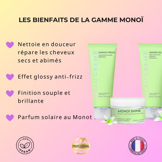 Oui. Nos formules concentrent des actifs professionnels comme la kératine végétale et l’acide hyaluronique, spécifiquement choisis pour réparer, hydrater et renforcer la fibre capillaire en profondeur. Dès les premières utilisations, vos cheveux retrouvent douceur, brillance et souplesse.