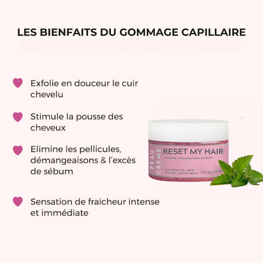 - 1 fois par semaine, utilisez notre gommage doux pour purifier le cuir chevelu, stimuler la circulation et préparer tes cheveux à recevoir les soins.