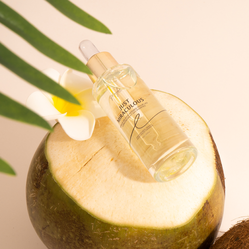 Une fusion de 7 huiles précieuses (Argan, Ricin, Camélia, Pracaxi, Olive, Tournesol, Coco) pour nourrir et réparer en profondeur la fibre capillaire et les pointes fourchues.