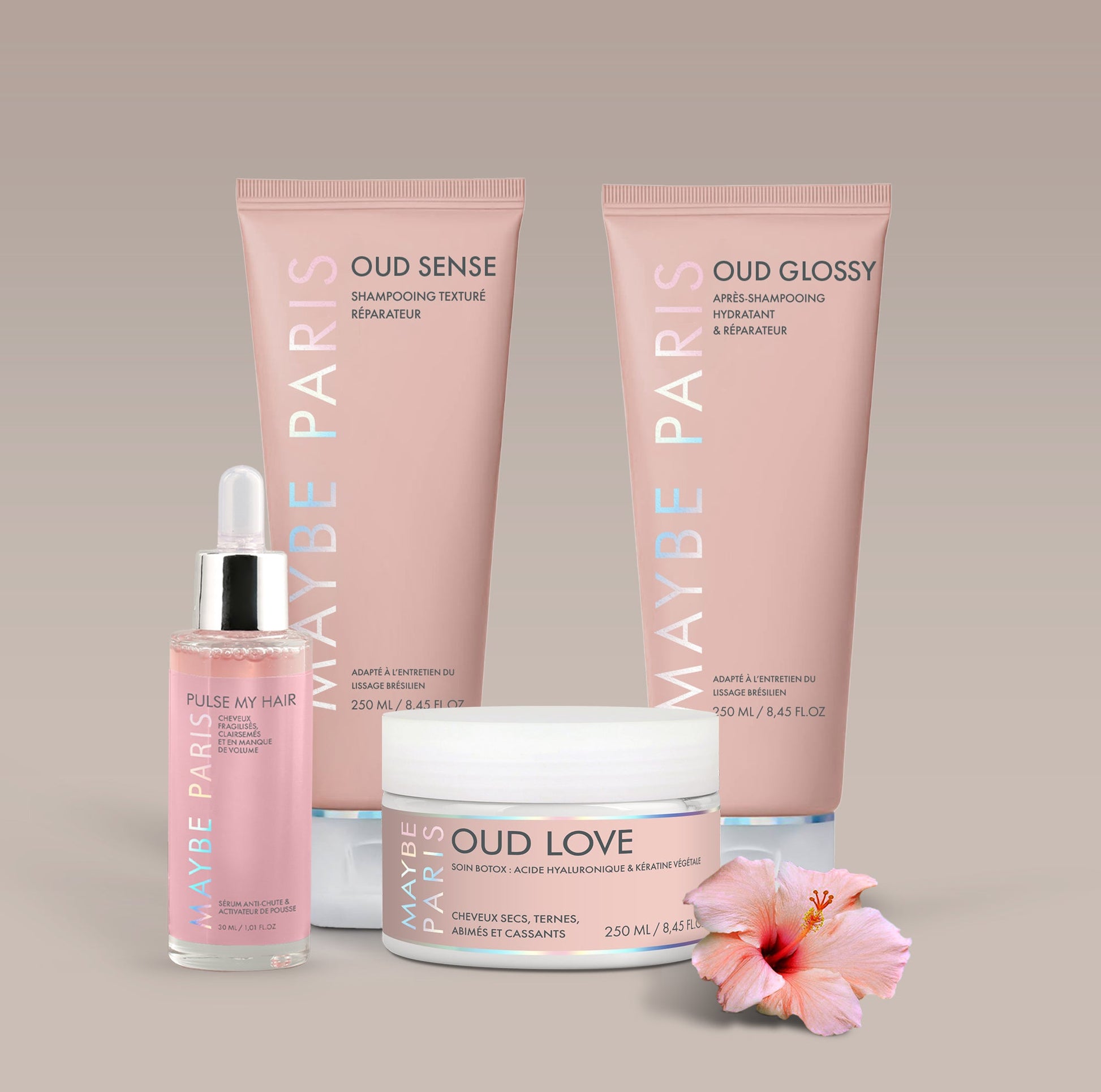- Shampooing OUD SENSE, Après-Shampooing OUD GLOSSY, Soin OUD LOVE, Sérum PULSE MY HAIR